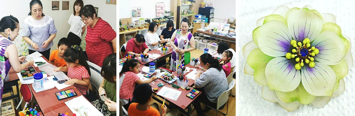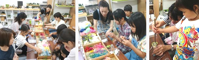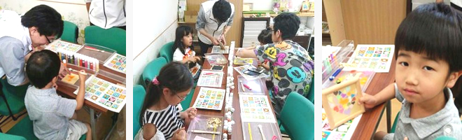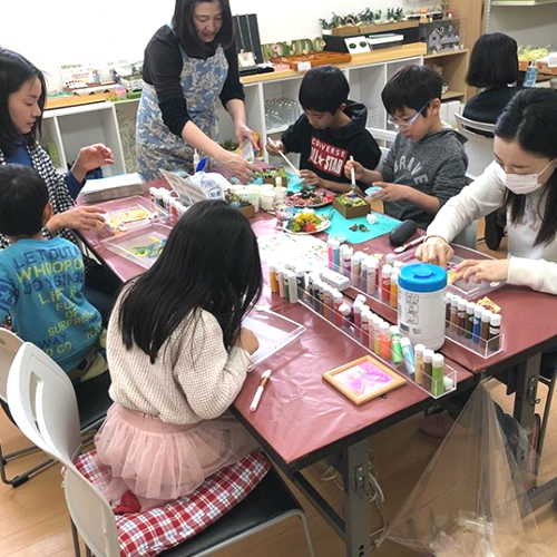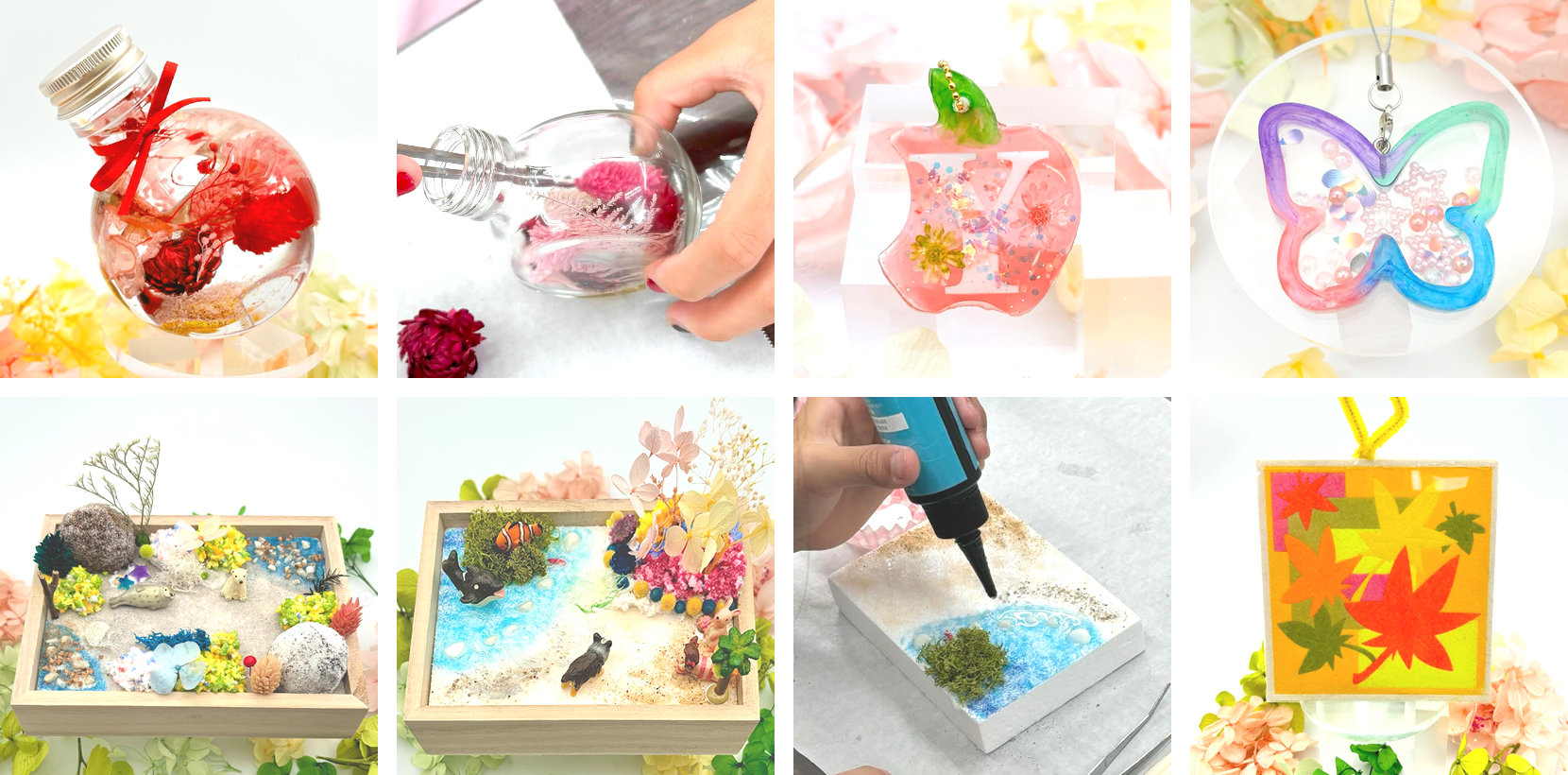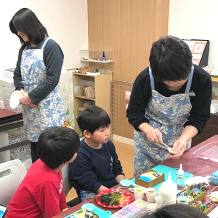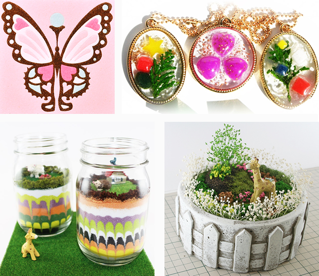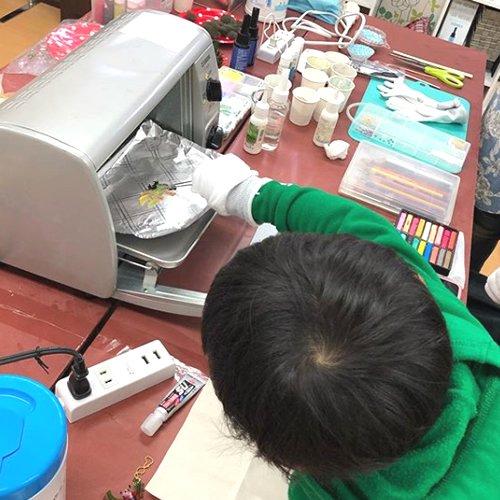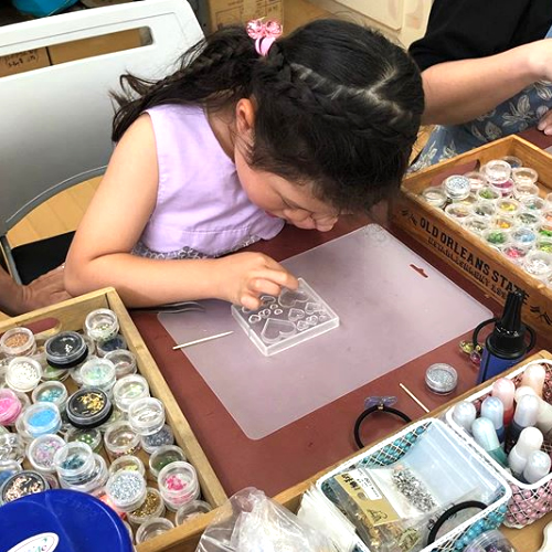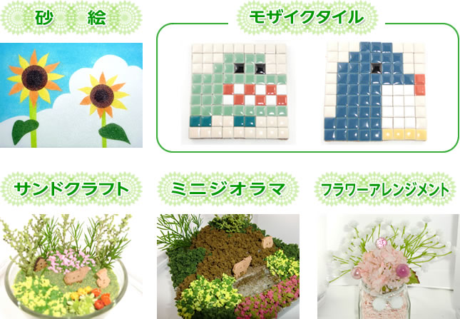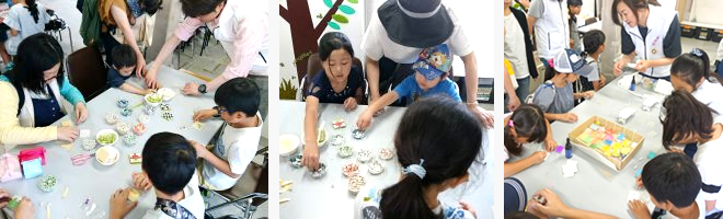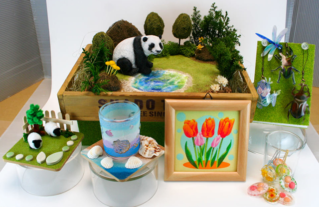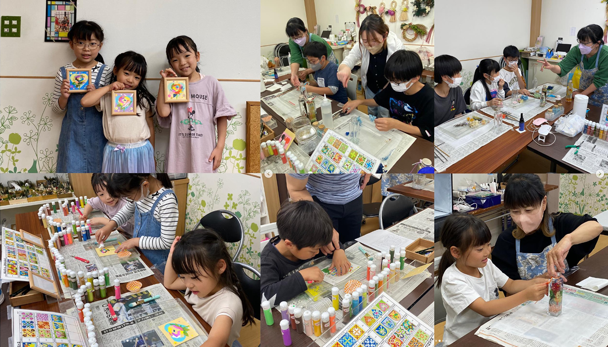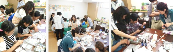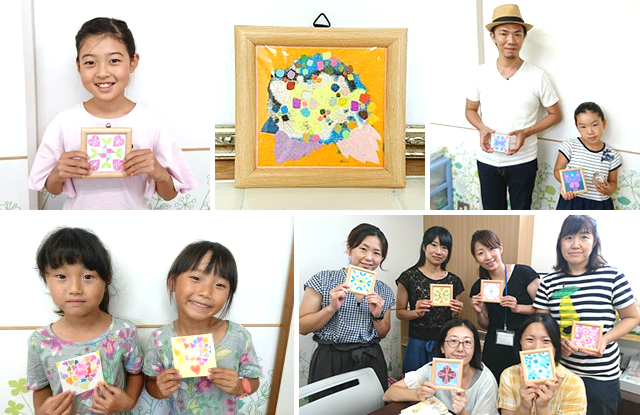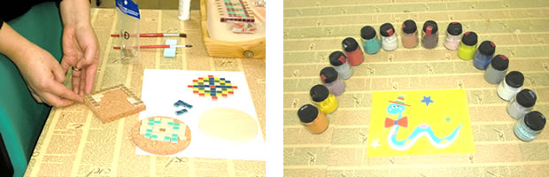 無料の体験コーナーは「モザイクタイル」と「ハイブリッドレジンのパーツづくり」