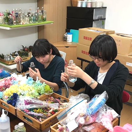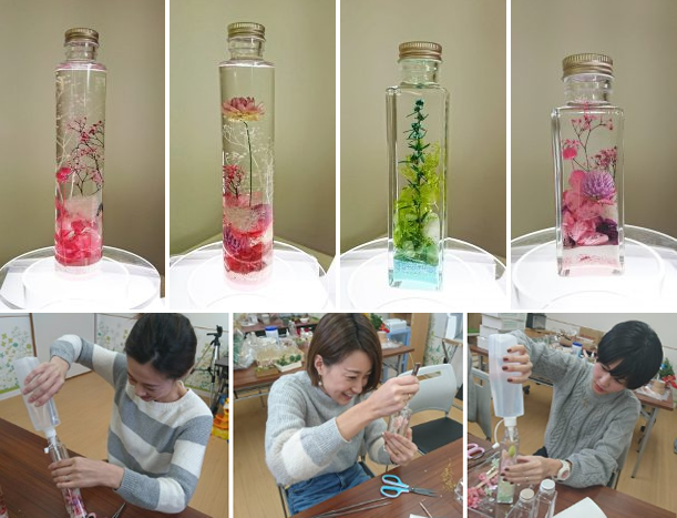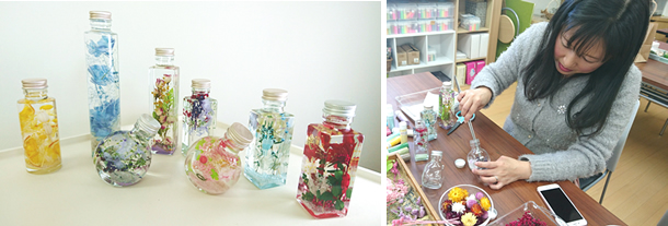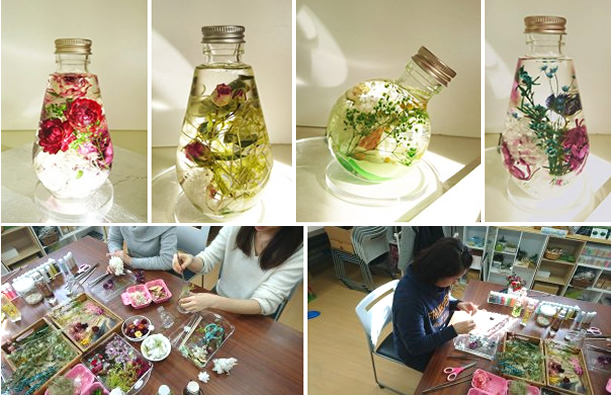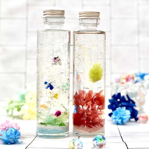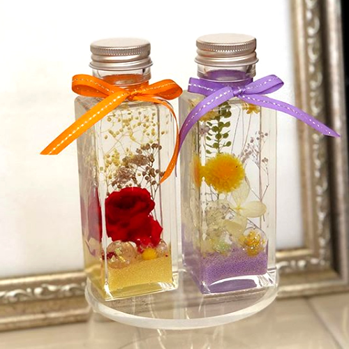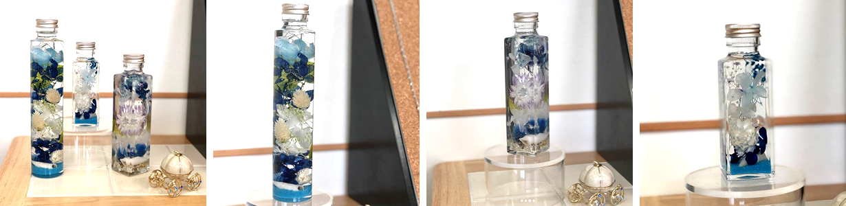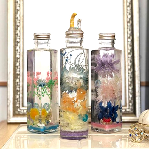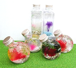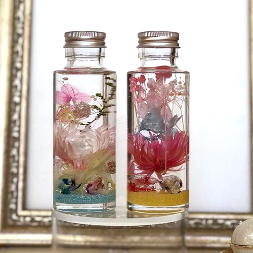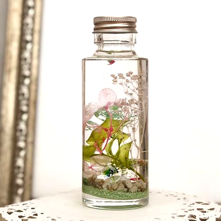 お気に入りの花材を専用オイルの中に入れて、きれいなまま長くお楽しみいただけます