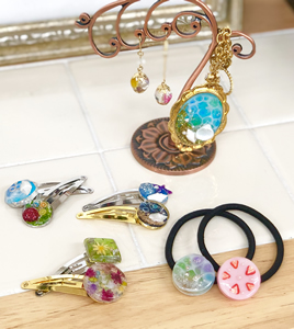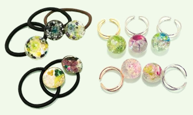 ヘアゴムやピアス、イヤリングなど、自分だけのアクセサリーが作れます